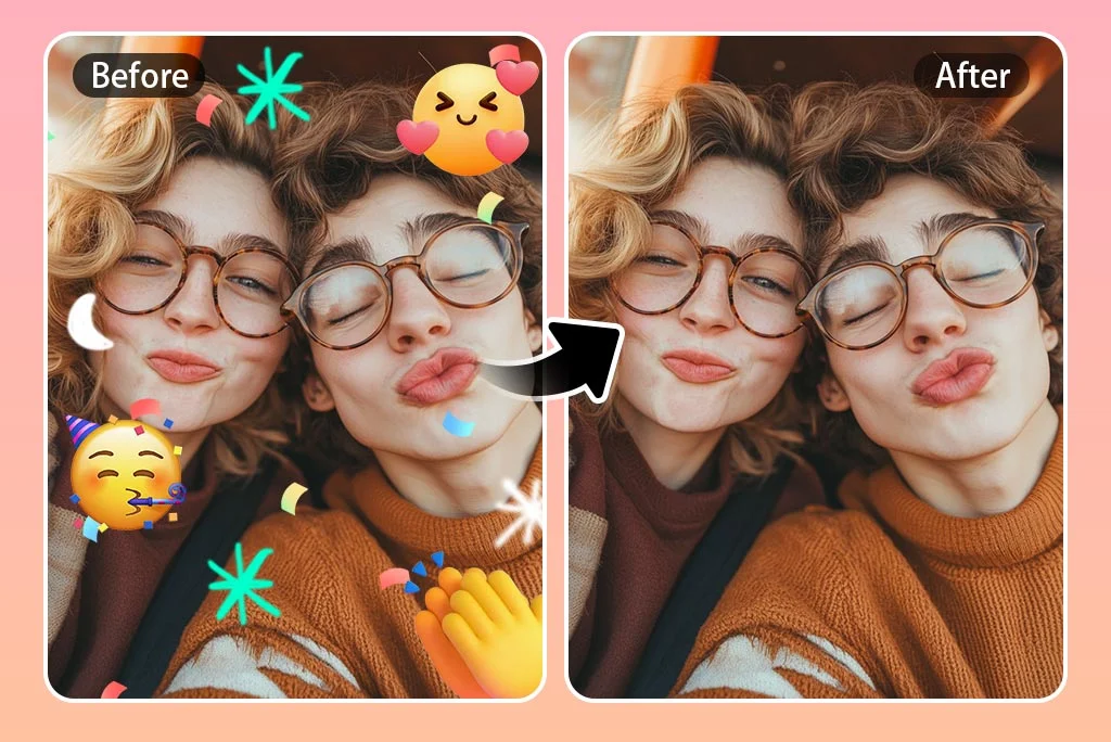 Memories: Perhaps a cherished family photo has emojis on faces or backgrounds, and you want to preserve it naturally.